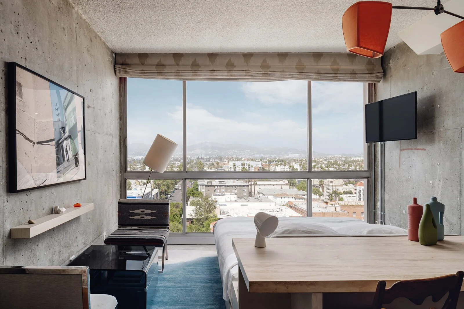 Floor-to-ceiling windows with stunning Los Angeles skyline views